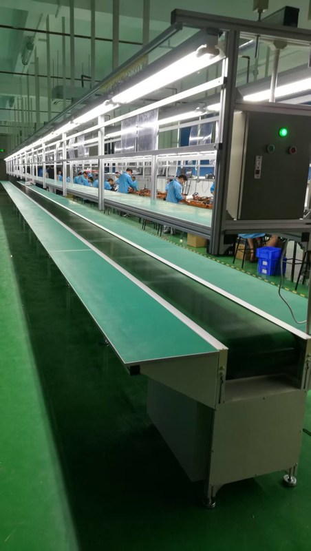 O princípio de funcionamento da linha de montagem da correia é conduzir o rolo de condução a girar através do dispositivo de condução,e o atrito entre o rolo de condução e a cinta transportadora faz com que a cinta transportadora mover, e os artigos são colocados na fita transportadora e transportados para a posição designada com o movimento da fita transportadora.O dispositivo de tensão mantém o estado de tensão da correia transportadora para garantir o funcionamento normal da correia transportadora.O dispositivo de varredura limpa regularmente a cinta transportadora para assegurar a limpeza do ambiente de transporte.