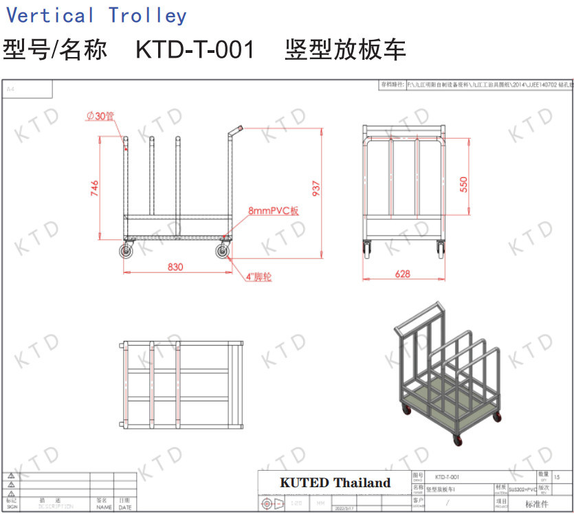 KTD-T-001 Vertical Trolley Grey Torlley Catalog List with Silent Casters for Noise Reduction