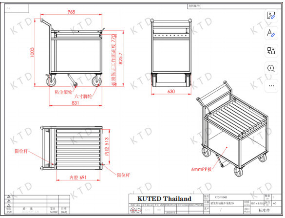 1. The main raw material of Screen Rack Transport Trolley is stainless steel SUS201 square pass.